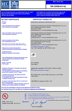 基本型微動(dòng)開(kāi)關(guān)CB證書(shū)